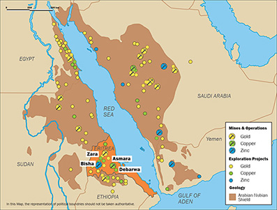 Von *Martin Zimmermann: Knappe 20 Minuten dauert die Fahrt von Asmara zur Mine Emba Derho, dem „Herzstück“ der Asmara Mining Share Company (AMSC). Das chinesische Unternehmen Sichuan Road and Bridge Mining Investment Company (SRBM) hält 60 Prozent an dem Joint Venture, die staatliche Eritreische Nationale Bergbau Company (ENAMCO) weitere 40 Prozent. AMSC hat drei weitere Lizenzen für den Abbau von Gold, Silber, Kupfer und Zink in Debarwa, Adi Nefas und Gupo.